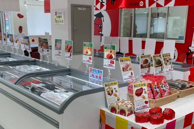 めんたいパーク自慢のジャンボおにぎり(生明太子・焼きたらこ)は店内で握っているできたてが味わえます。その他めんたいパークの大人気商品が購入できる直売所です!